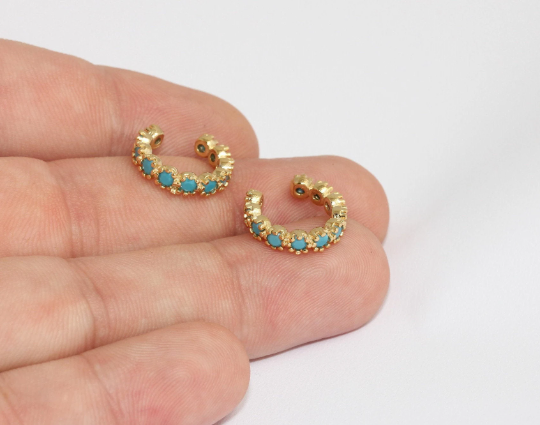 15mm 24k Shiny Gold Micro Pave Ear Cuffs, Dainty Ear , MLS570