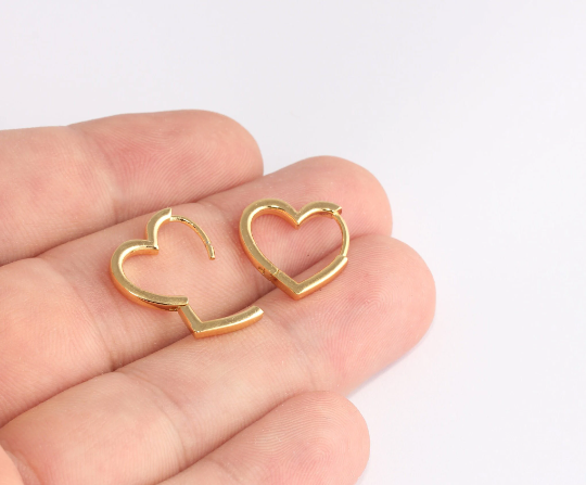 16mm 24k Shiny Gold Heart Earrings, Gold Leverback , SLM641