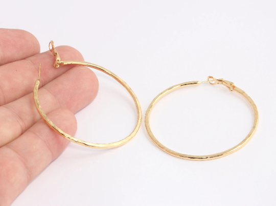 50mm 24k Shiny Gold Hoop Earrings, Textured Earrings, CHK672-1