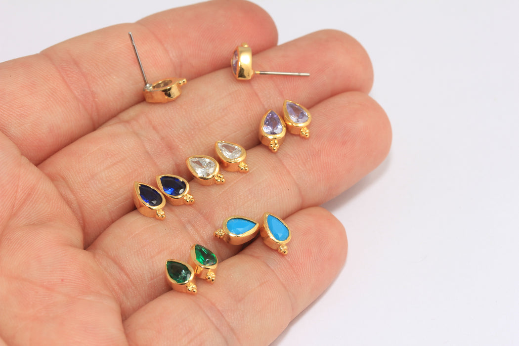 5x9mm 24k Shiny Gold CZ Stud Earrings, Crystal Teardrop Earrings,