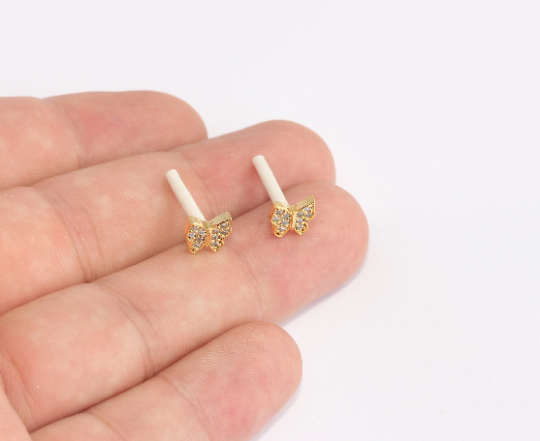 7,5x9mm 24k Shiny Gold Stud Earrings, Micro Pave Gold SLM401