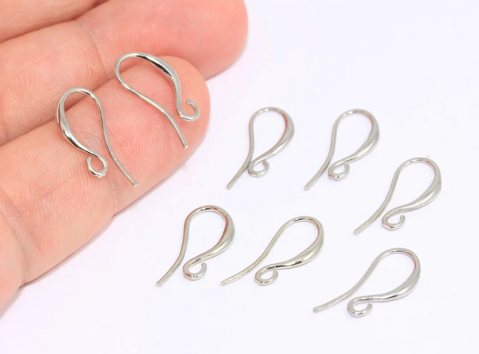 8x15mm Rhodium Plated Earring Hooks, Fish Hooks, Earring Settings, CMR113