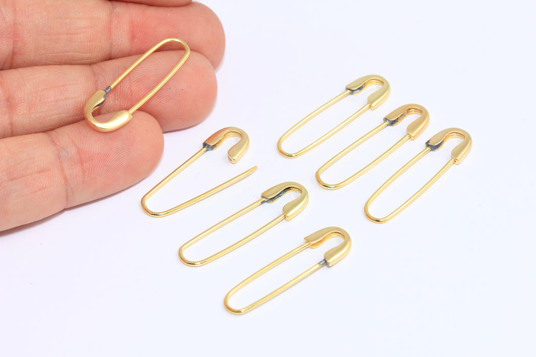 8x29mm Raw Brass Safety Pin Charms, Brass Safety Pin Earrings, ETS75