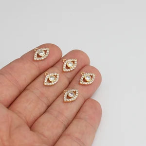 10x14mm 24k Shiny Gold Evil Eye Charm, Micro Pave Charm BRT891