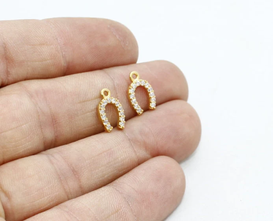 7x12mm 24k Shiny Gold CZ Horseshoe Charms, Horseshoe ZRCN233