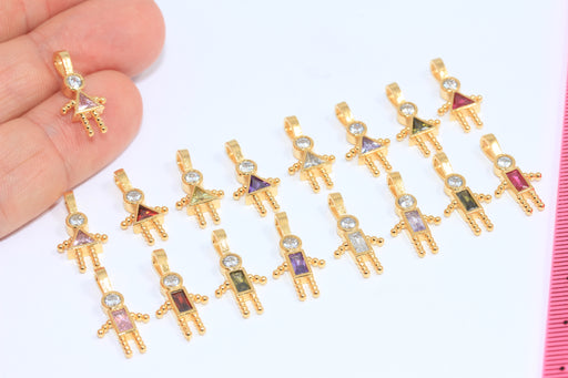 24k Shiny Gold Girl Or Boy CZ Birthstone Charms, Micro Pave Kids Pendant, Cute CZ Girl Or Boy Charms, ZRCN
