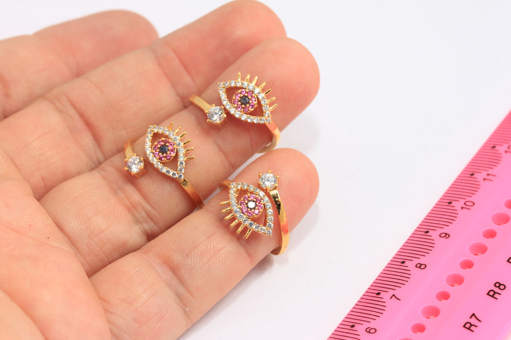 16-17mm 24k Shiny Gold Wrap Eye Rings, Micro Pave Evil Eye Ring, MLS866