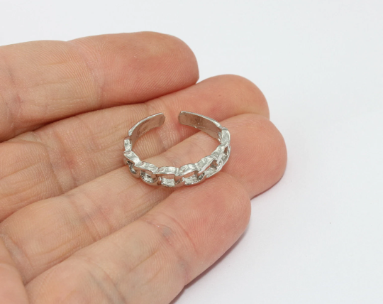 Rhodium Plated Chain Ring, Braided Ring, Adjustable Rhodium Rings, BRT810