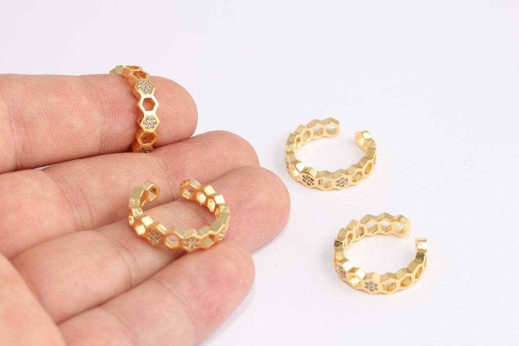 17-18mm 24k Shiny Gold CZ Bee Ring, CZ Honeycomb Ring, SLM169