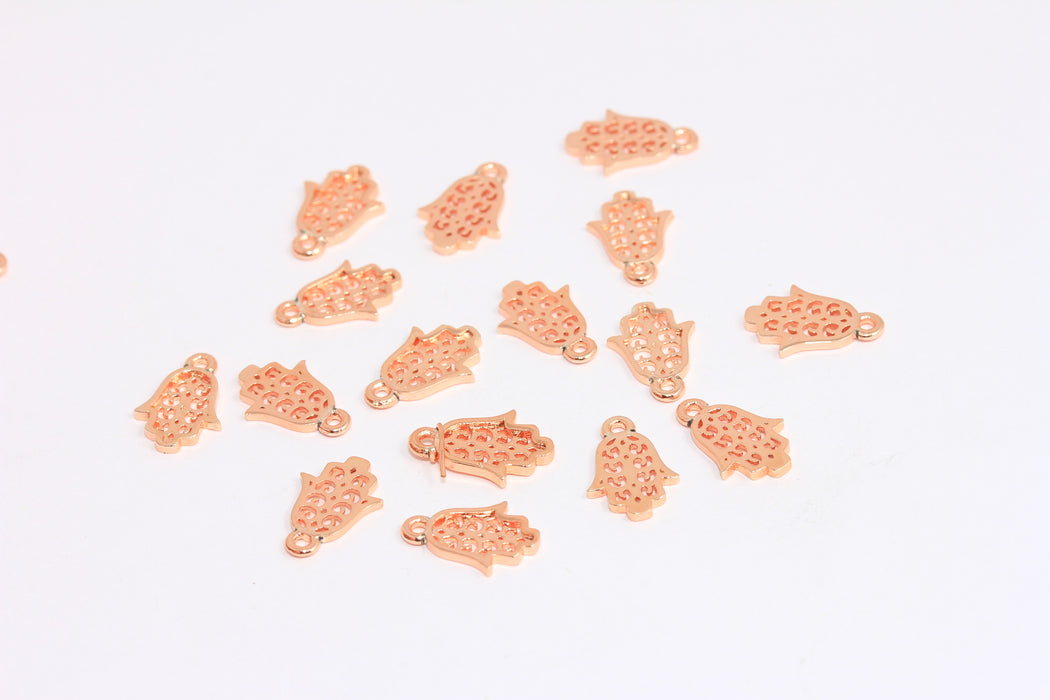 8x12mm Rose Gold Plated Hamsa Charm, Filigree Hamsa Beads, Fatima Hand Beads, ROSE335