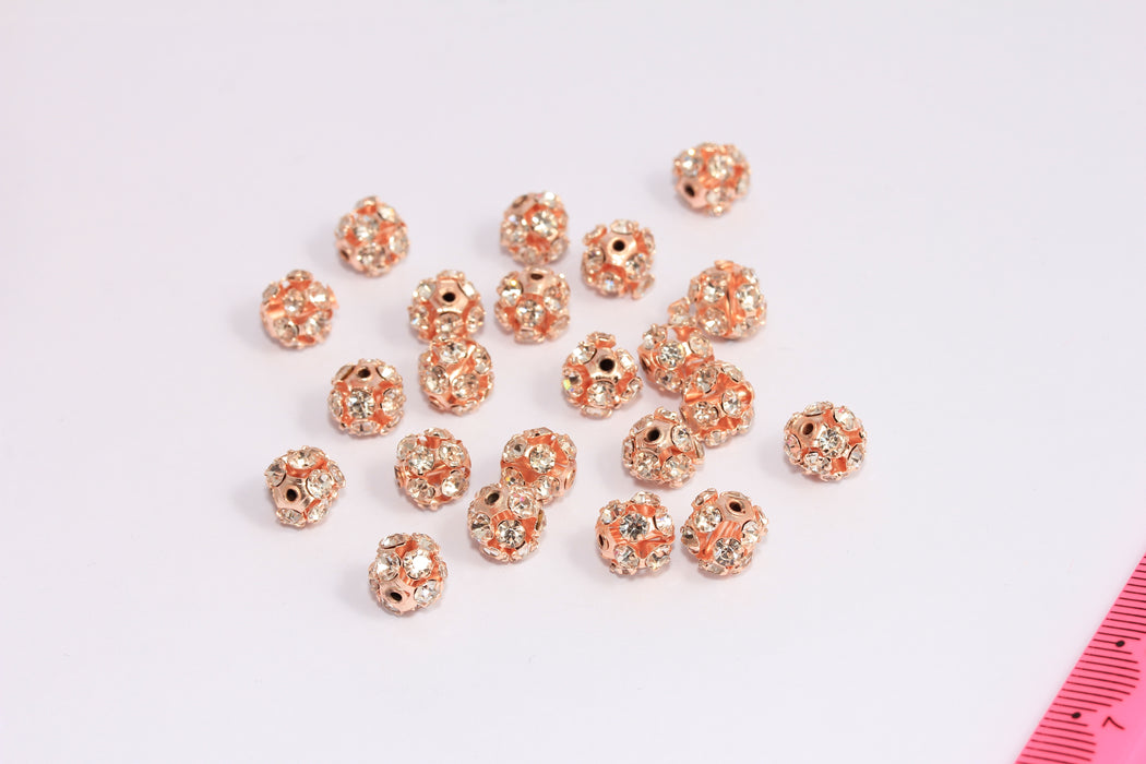 8mm Rose Gold CZ Spacer Beads, Micro Pave Ball Beads, MTE1054