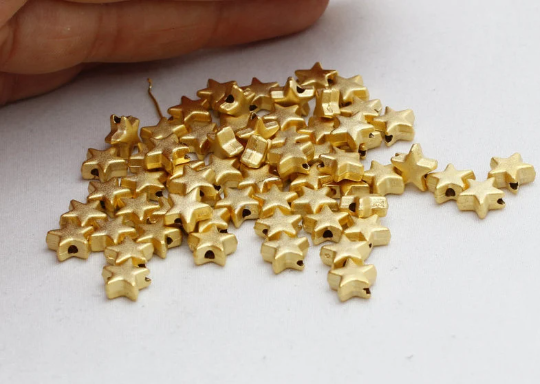 8mm 24k Matt Gold Plated Star Beads, Center Hole Star , Gold BRT41