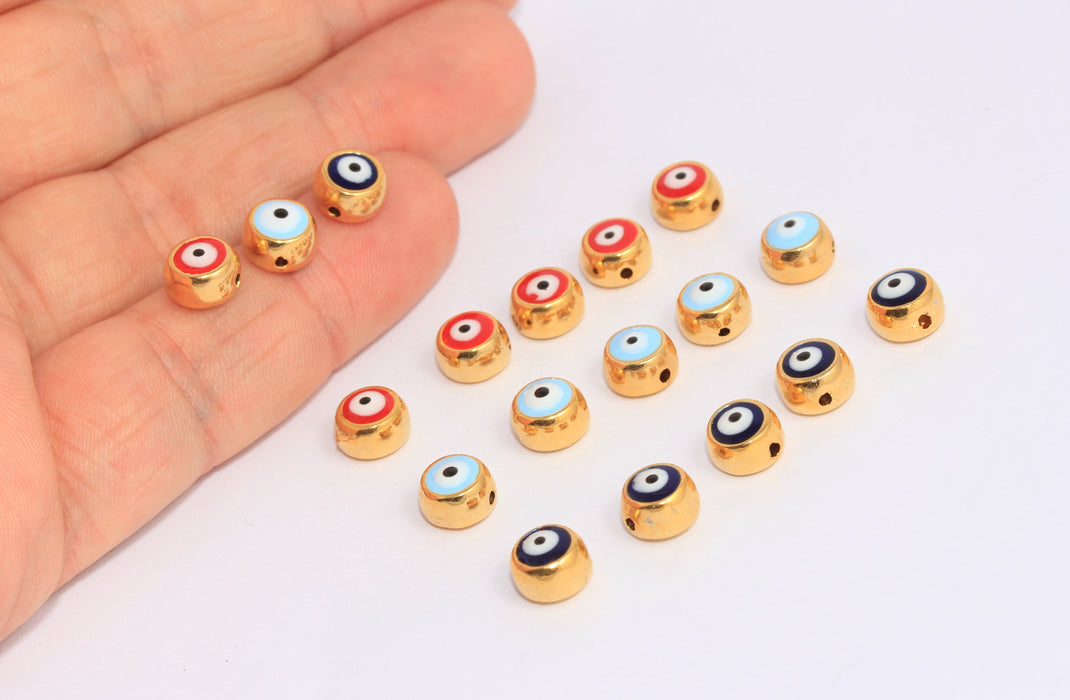 8mm 24k Shiny Gold Evil Eye Beads, Colorful Enamel Evil Eye Charms,SLM54