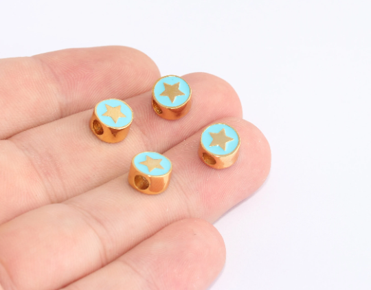 8mm 24k Shiny Gold Star Charms, Turquoise Enamel Star SLM1043
