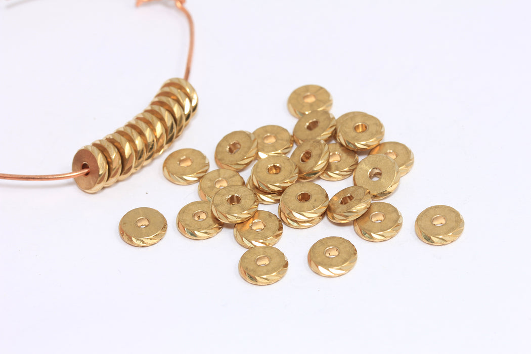 8mm Raw Brass Spacer Beads, Brass Spacers, Faceted Rondelle Beads, Round Industrial Beads, LA14