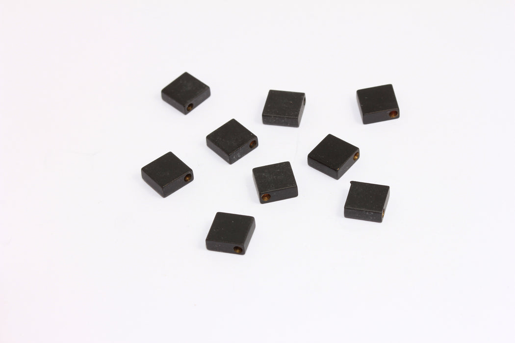 8x8mm Black Plated Square Charms, Black Geometric Sliding Beads, MTE1485