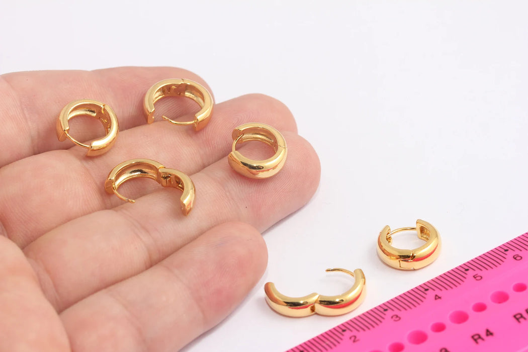 14mm 24k Shiny Gold Earrings, Leverback Earrings, MLS800