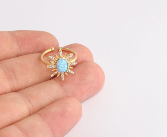 16-17mm 24k Shiny Gold Sun Ring, CZ Micro Pave Sun Rings, SLM894