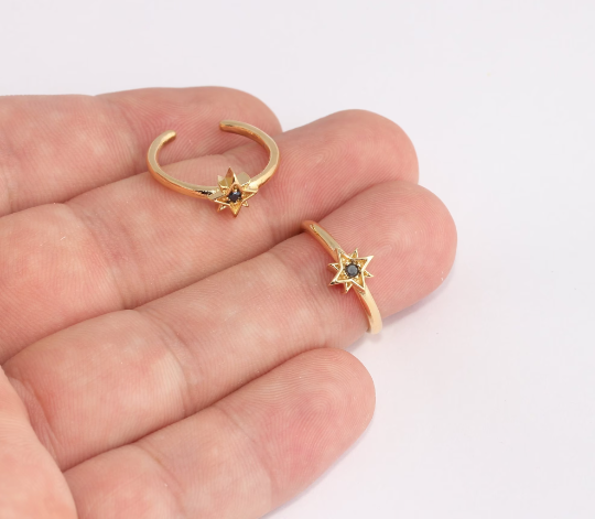 16mm 24k Shiny Gold Star Rings, Micro Pave Star Ring, SLM424
