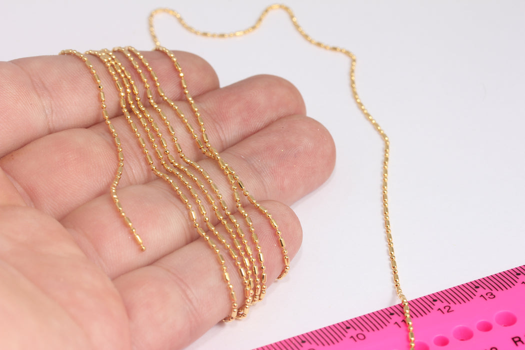 1,2mm 24k Shiny Gold Ball Chain, Soldered Ball Chains, Bead Chains, Satellite Chain, Soldered Ball Chains, Gold Plated Chains, BXB422-1