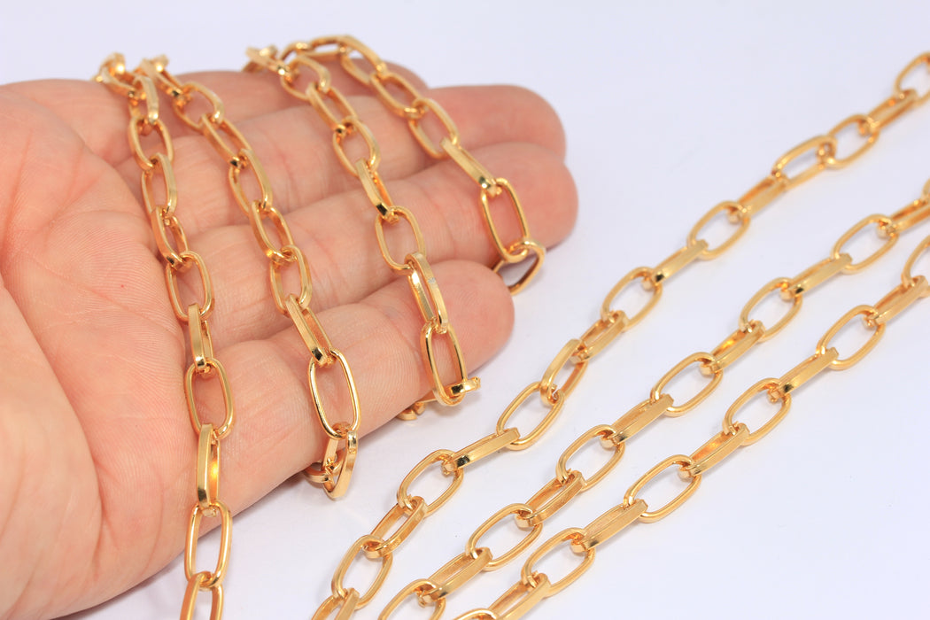 6x12,5mm 24k Shiny Gold Link Chain, Oval Link Rolo Chain, CHK238-1