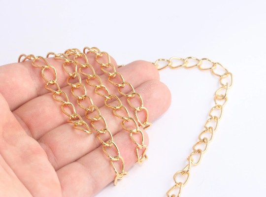 7x11mm 24k Shiny Gold Chain, Curb Chains, Large Gold CHK669-1