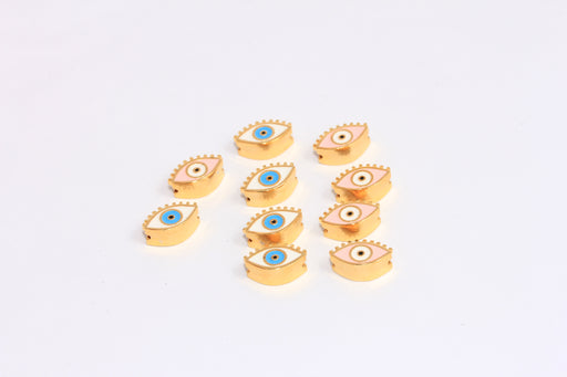 6x12mm 24k Shiny Gold Evil Eye Charm, Enamel Evil Eye Sliding Beads, CHK233-3