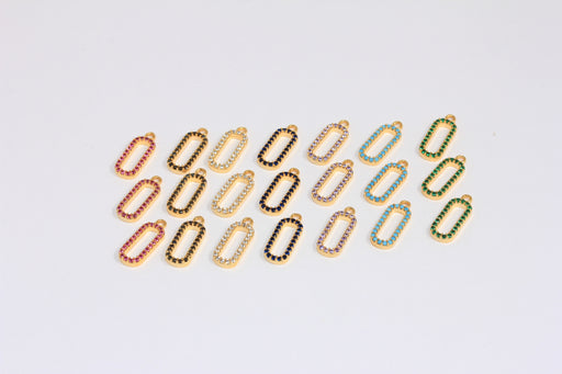 6x13mm 24k Shiny Gold CZ Chain Link Charms, CZ Bracelet Links, Micro Pave Optional Stone Color Link Pendant,