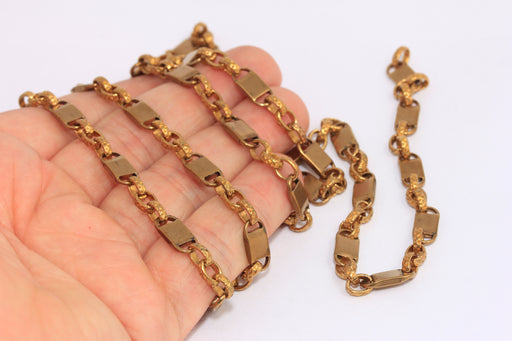 6x13mm Raw Red Brass Bar Chain, Thick Square Bar Chain, KPT43-1