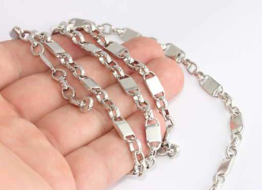 6x13mm Rhodium Plated Bar Chain, Square Bar Chain, Thick CHK721-3