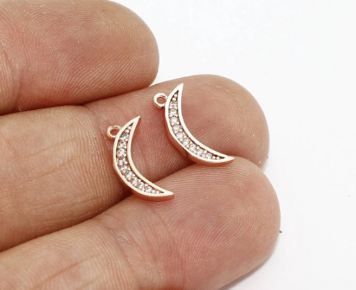 6x13mm Rose Gold Moon Charms, Micro Pave Moon, CZ Pendant, Cubic Zirconia Moon, Beads, Bracelet Charms, Moon Necklace, FLT, ZRCN96