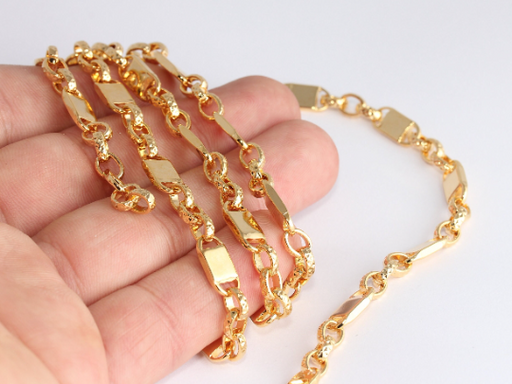 6x13mm 24k Shiny Gold Bar Chain, Square Bar Chain, Gold CHK143-2