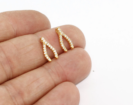6x13mm CZ Wishbone Charms, Gold Necklace Pendant,Jewelry ZRCN2