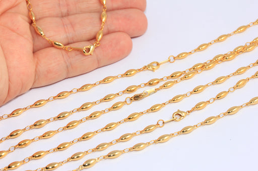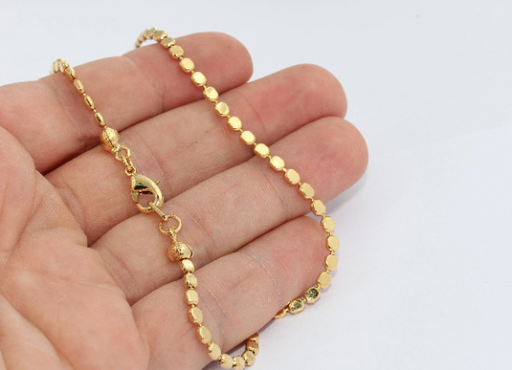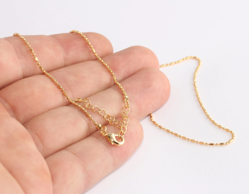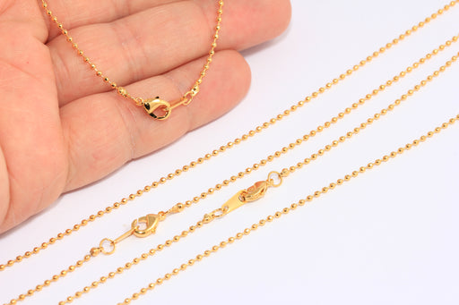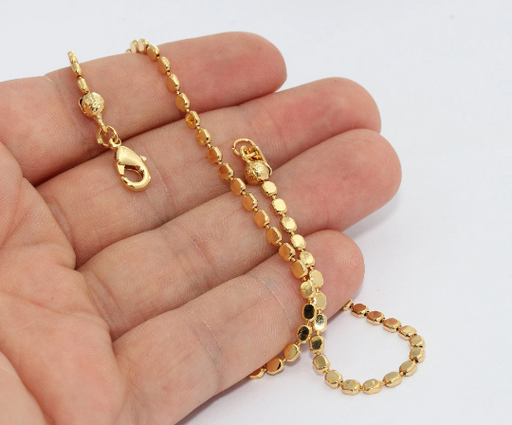 17'' 2,5mm 24k Shiny Gold Necklace, Beaded Chain, Ready BXB329