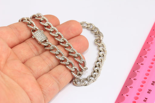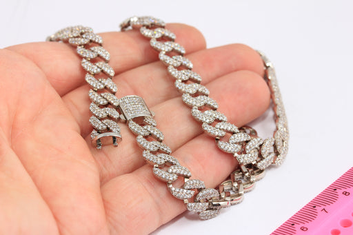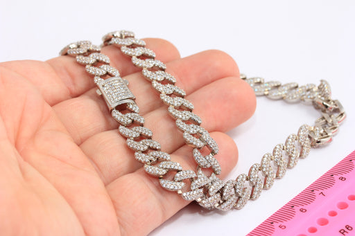 17" Rhodium Plated Cuban Link Necklace, CZ Necklaces, Curb Link Chain, Ready Necklace, Cubic Zirconia, Silver Plated Necklace, ROSE158-2