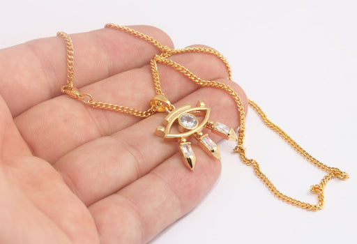 17'' 24k Shiny Gold Eye Necklace, CZ White Stone Eye Necklace, MLS462-1