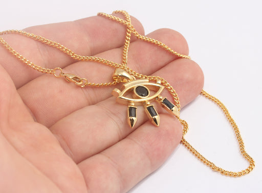 Material : BrassNecklace Length : 17'' - 43cmColor : 24k Shiny Gold PlatedStone Color: BlackQuantity: Optional