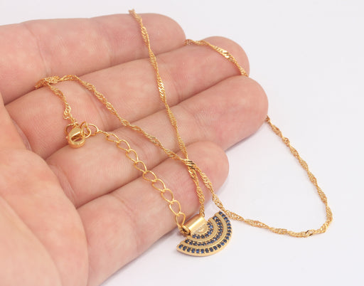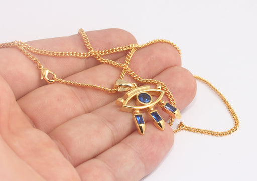 Material : BrassNecklace Length : 17'' - 43cmColor : 24k Shiny Gold PlatedStone Color: BlueQuantity: Optional