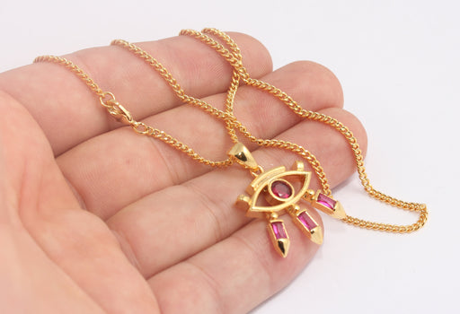17'' 24k Shiny Gold Eye Necklace, CZ Purple Stone Eye Necklace, MLS462-4