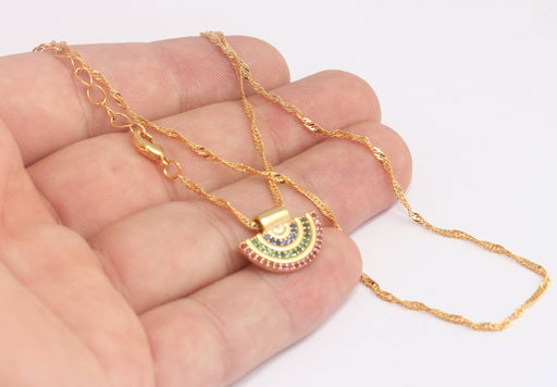 Material : BrassNecklace Length : 17'' +2'' extender- 48cmColor : 24k Shiny Gold PlatedStone Color: MixedQuantity: Optional