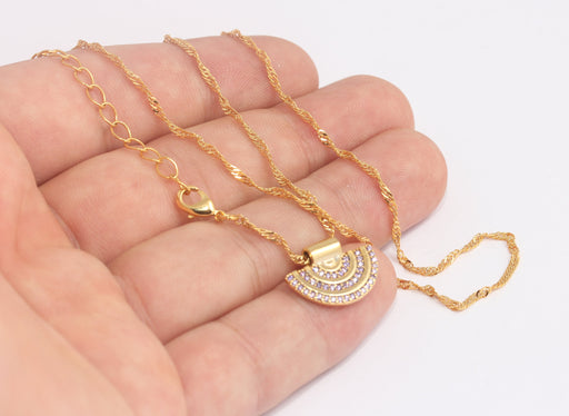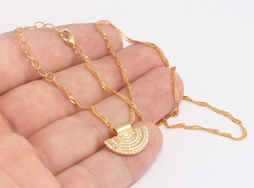 Material : BrassNecklace Length : 17'' - 43cmColor : 24k Shiny Gold PlatedStone Color: WhiteQuantity: Optional