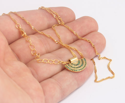 Material : BrassNecklace Length : 17'' +2'' extender- 48cmColor : 24k Shiny Gold PlatedStone Color: GreenQuantity: Optional