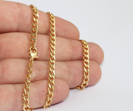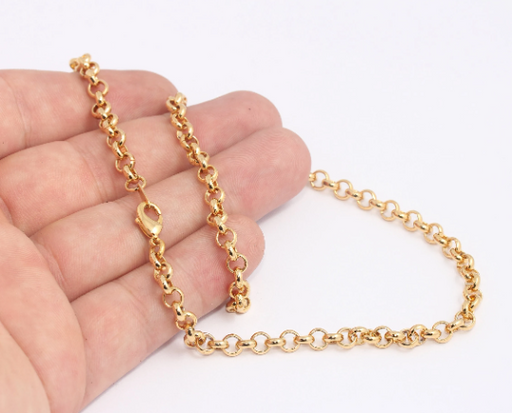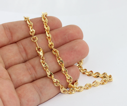 Material : BrassLength: 17" - 43cmChain Link Size : 4,5mmColor : 24k Shiny Gold Plated Quantity : Optional