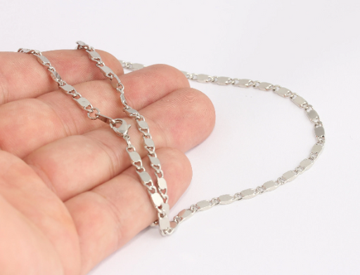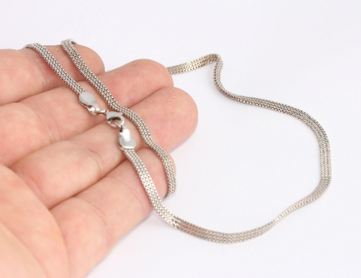 Material : BrassWidth Size : 5mmThickness : 0,6mmColor : Rhodium/ Silver PlatedLength : 17 inches - 43cmQuantity : Optional