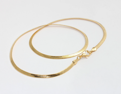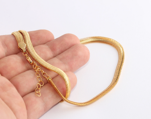 17" 4mm 24k Shiny Gold Snake Chains, Wide Snake Chain, Gold AE17