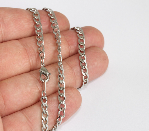 17" Rhodium Plated Curb Necklace, Ready Made Necklace, CHK120