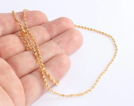 17'' 24k Shiny Gold Chain, Ready Made Necklace Chains, CHK346