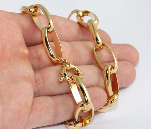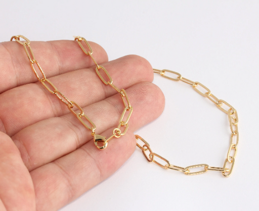 Material : BrassLength: 17" - 43cmChain Link Size : 13x25mmColor : 24k Shiny Gold Plated Quantity : Optional