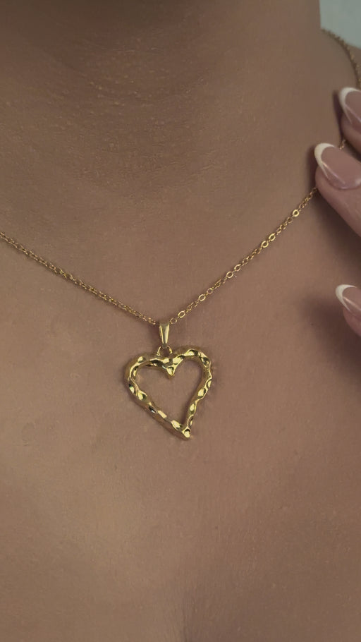 17'' +2'' 24k Shiny Gold Heart Charm Ready Necklace, Hammered Heart Shaped Frame Pendant Necklace, DC191-13