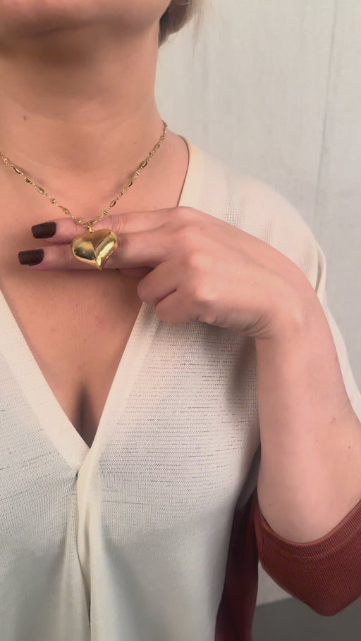 17'' +2'' 24k Shiny Gold Heart Medallion Ready Necklace, Puffed Heart Shaped Pendant Necklace, DC16-36
